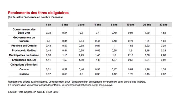 Voici les rendements offerts cette semaine, selon les calculs de Fiera Capital.